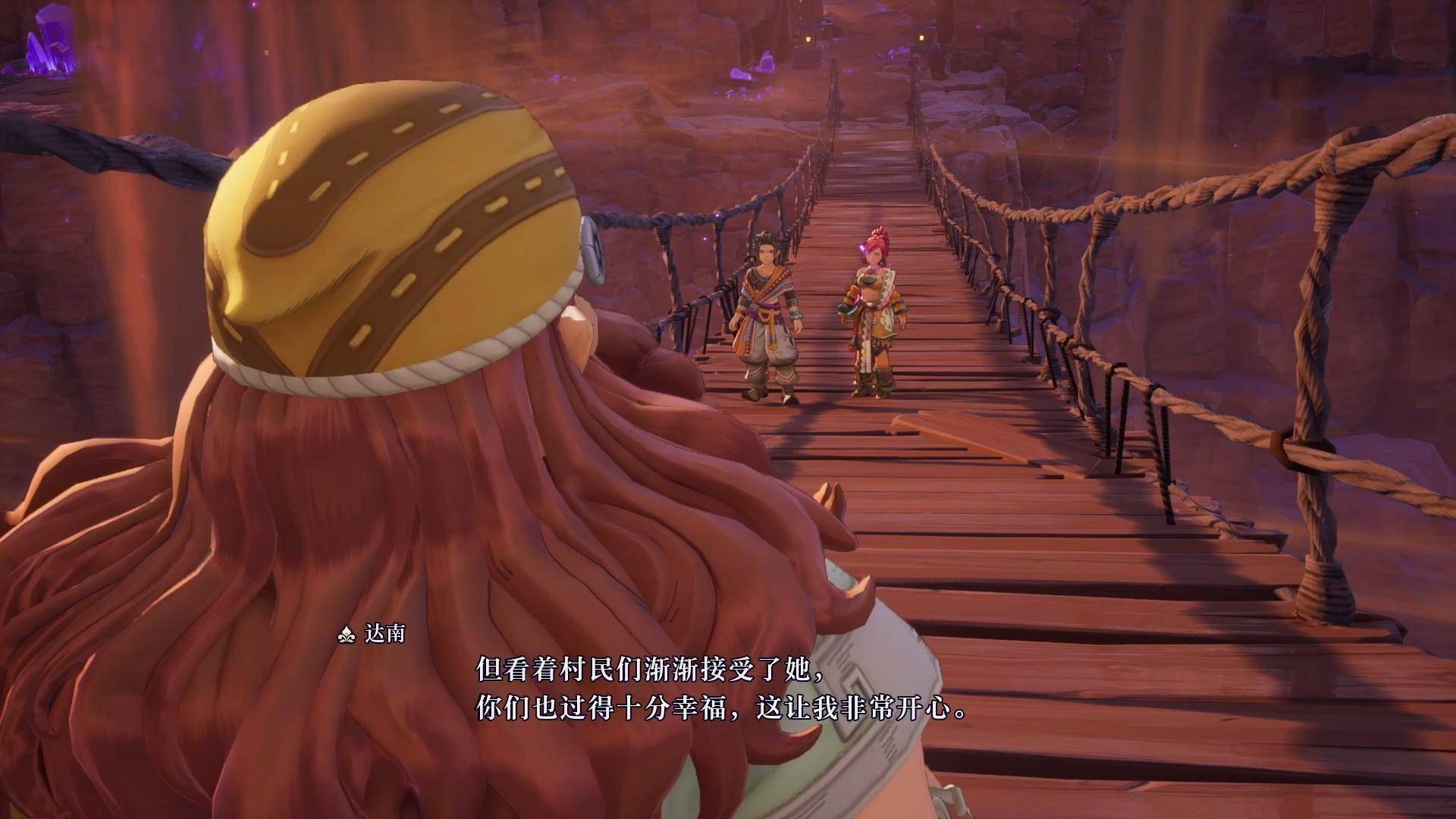在桥上会和一个名叫达南的人进行对话(看着像村长),他会告诉主角逃离村子以后的后果。