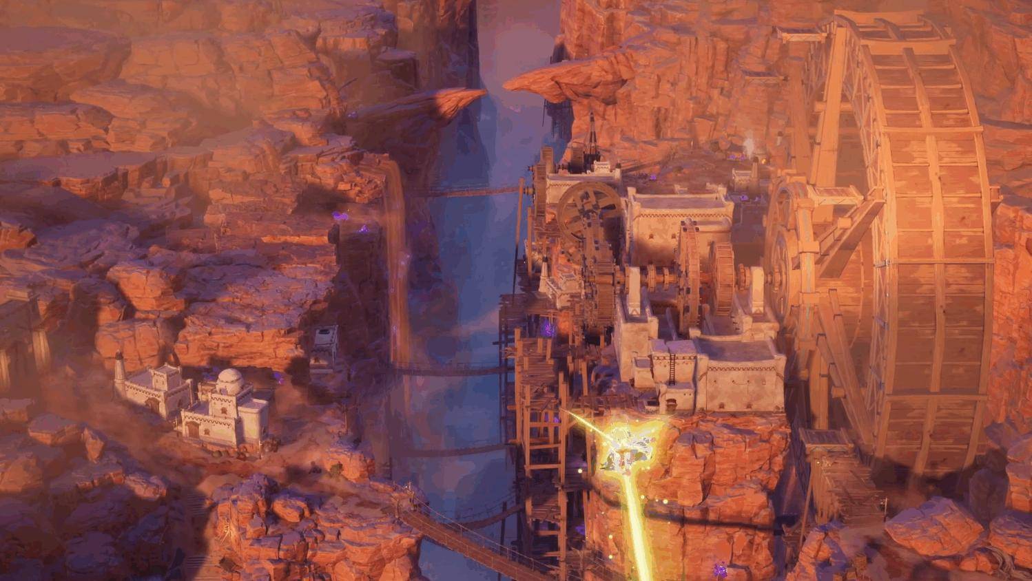 走到前方会有一个巨大的水车,我们只需要跳上它的木板,等到一定高度就会触发剧情。