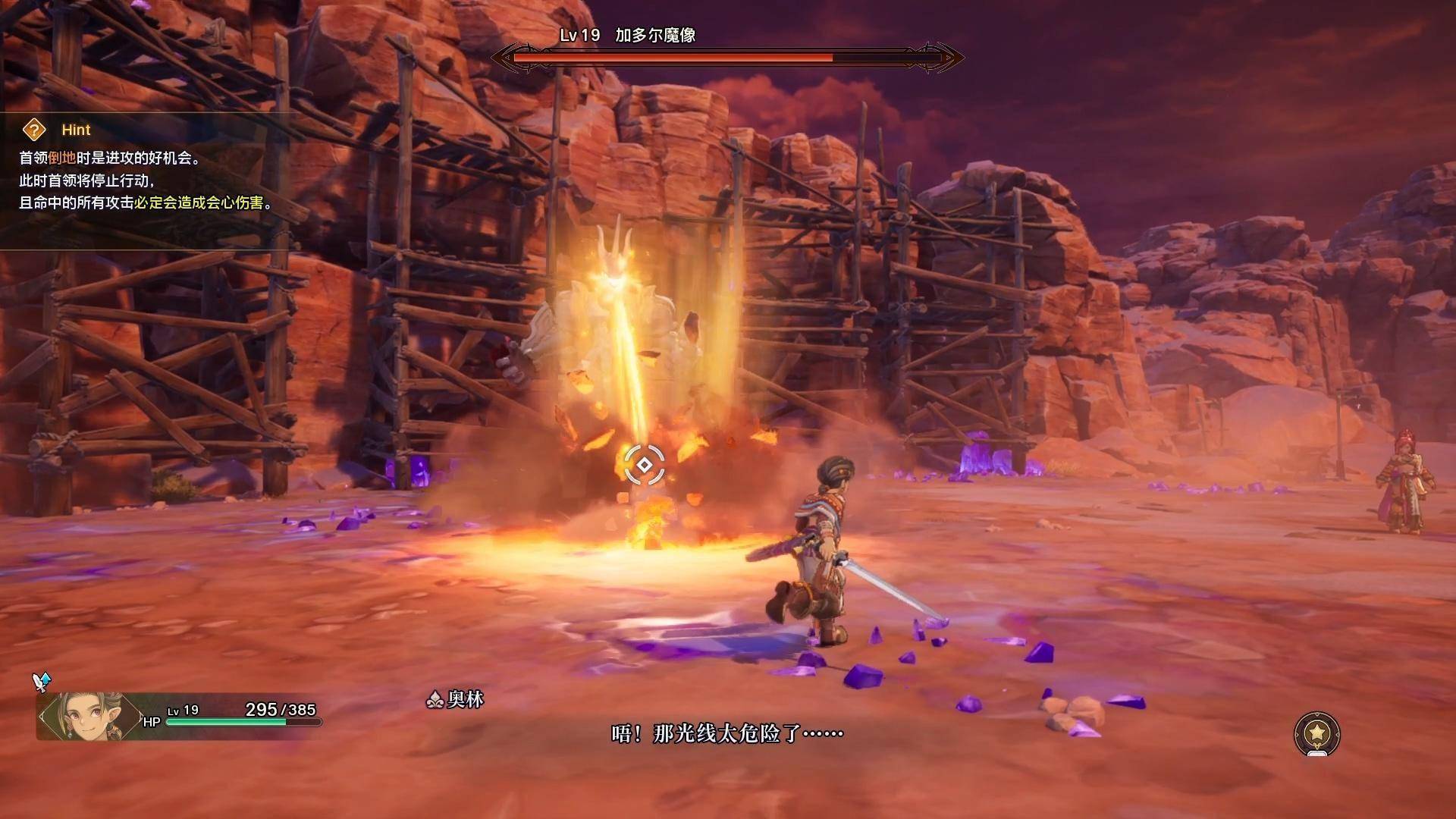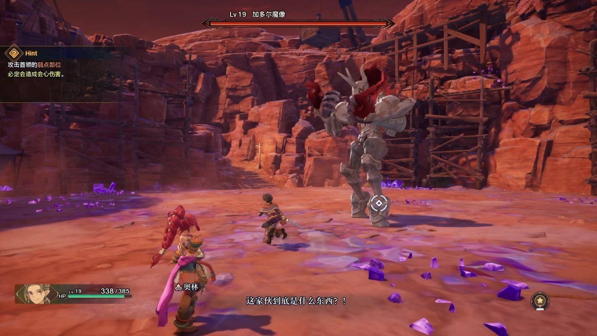 这个巨型魔像的弱点是头部,所以击破脚部让boss倒地攻击头部是最有效的攻击方式,而且命中的攻击将会必定变成会心伤害。