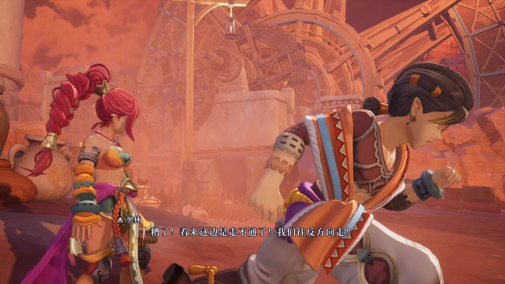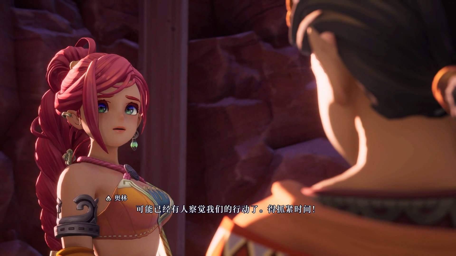接下来画面给到序章的主角,奥林和莱莎,他们准备一起逃离村子,莱莎显得略微犹豫。