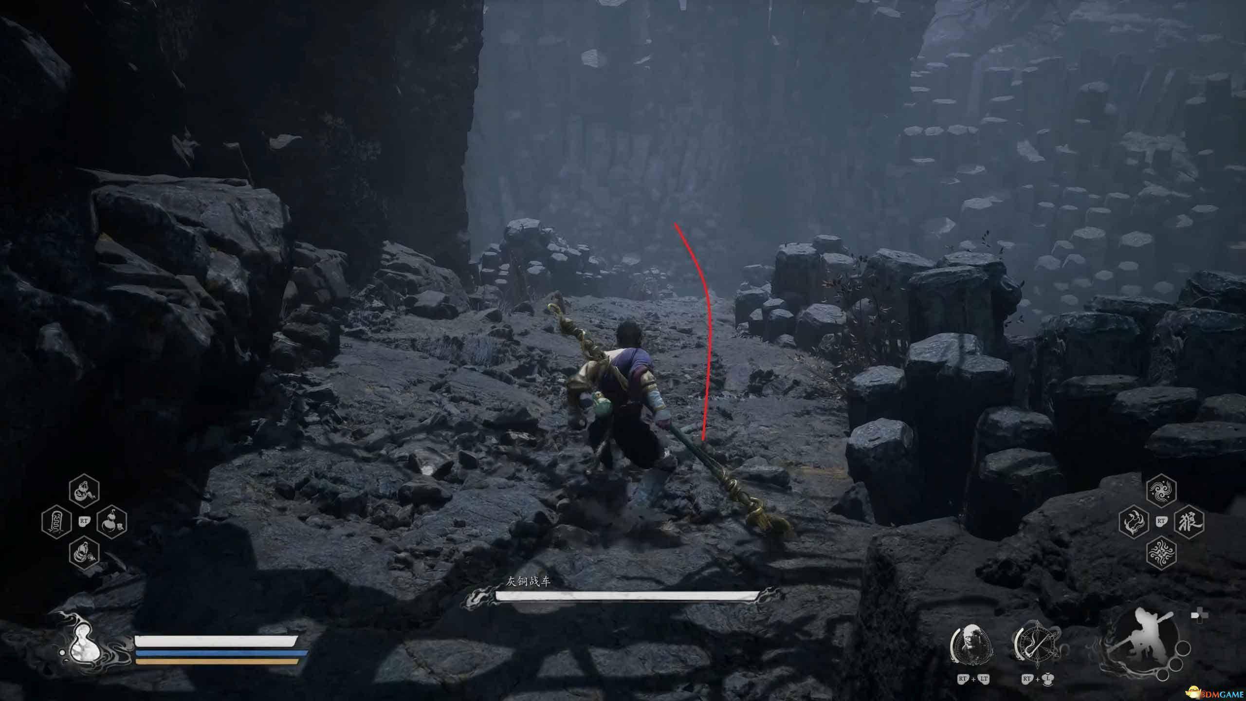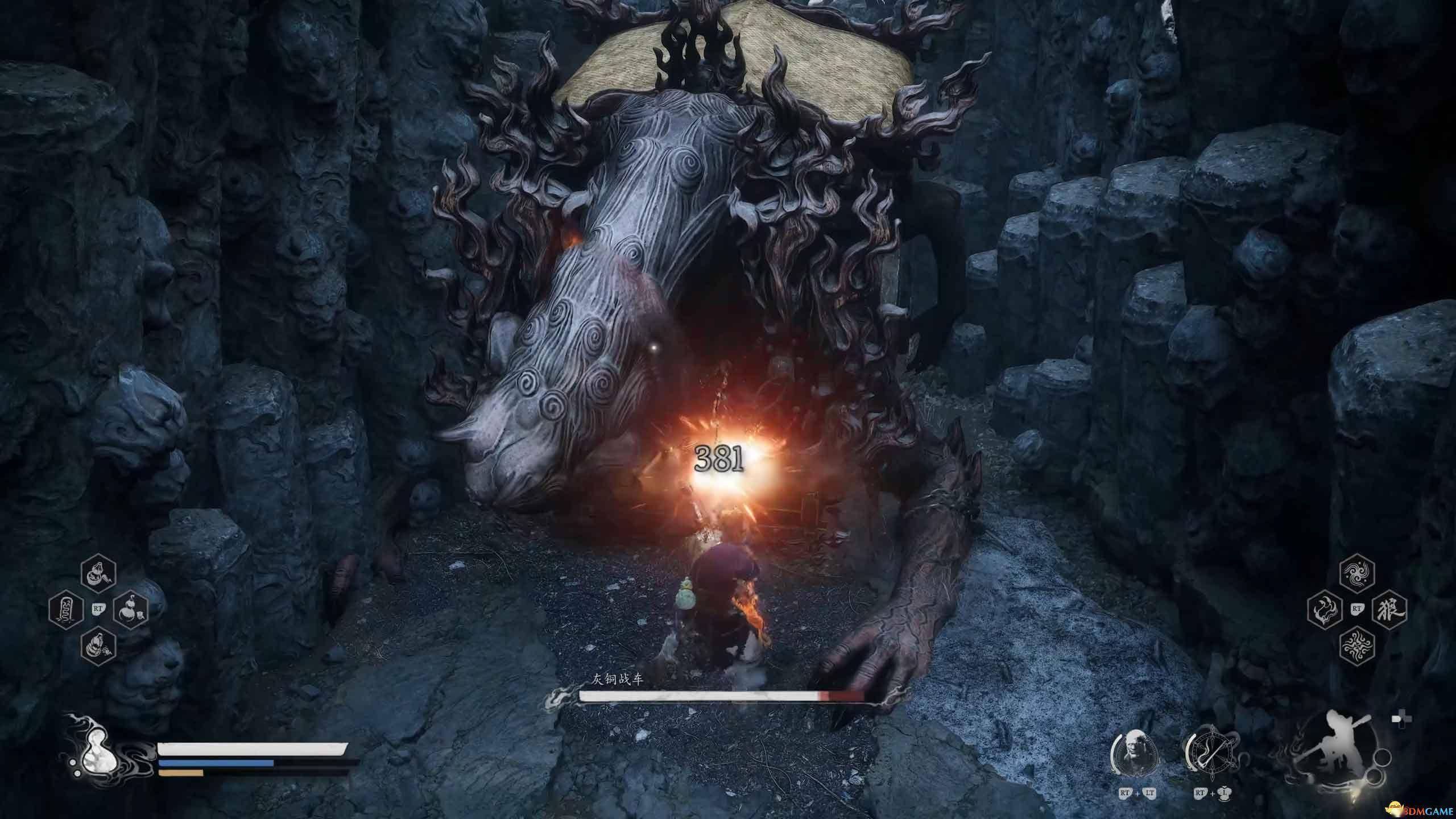 进洞后注意角落里带着枷锁的小怪,这种小怪3级棍势直接砸死最好,慢慢减血打死的话会自爆,要小心点。
