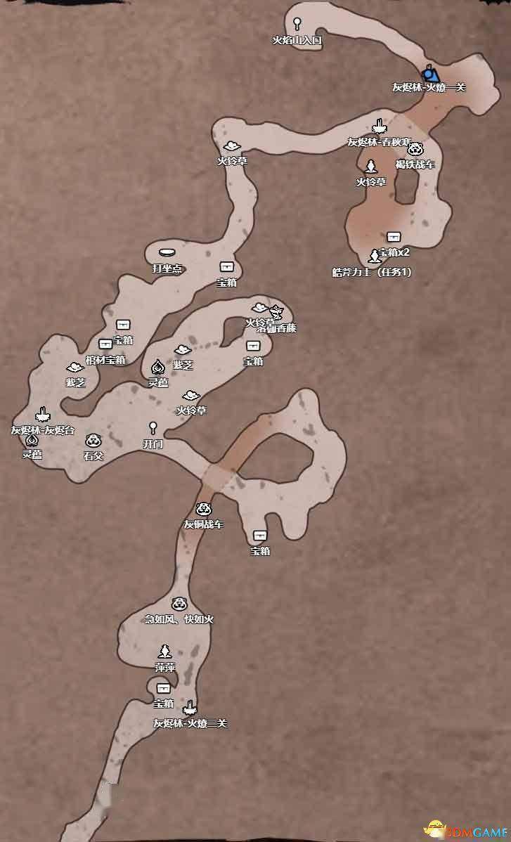 然后过吊桥一路沿红线上去就是灰烬台土地庙了。