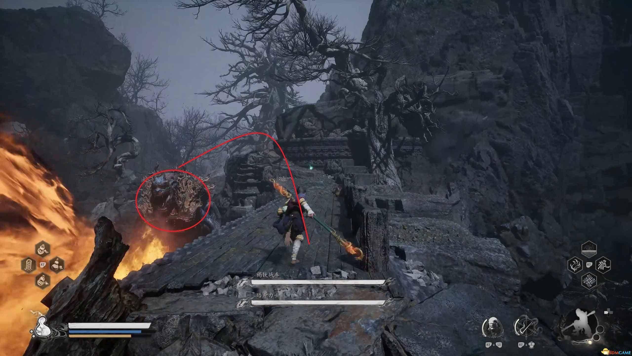 搞定了褐铁战车再回头下去打红圈处的皓斧力士。