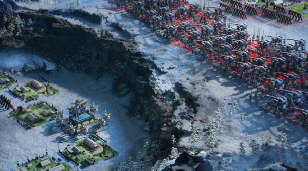 团队首先是重构了整个沙盘地图的逻辑,使其拥有高低差。高地玩家可以利用地势,获取更广阔的视野,掌握敌军动向,既可以选择从高处俯冲,也可以选择扔滚石;而处在低地的部队则可利用山体滑坡而成的小道向上突袭。