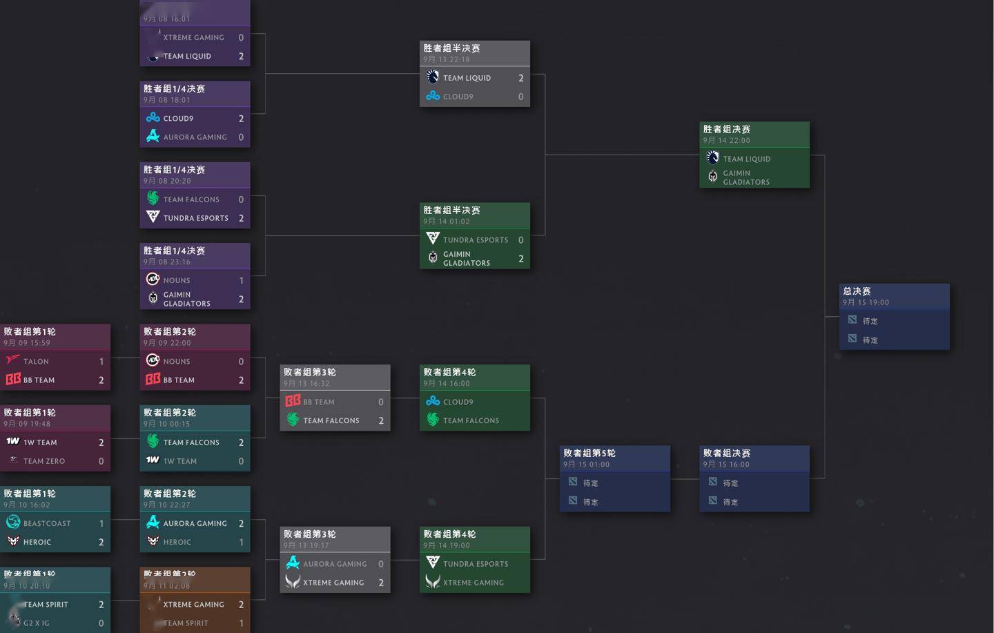 紧接着败者组第三轮的是胜者组第二轮,Team Liquid 与 Gaimin Gladiators 分别战胜对手晋级胜者组决赛,而 Tundra Esports则落入败者组成为 XG 的下一轮对手。