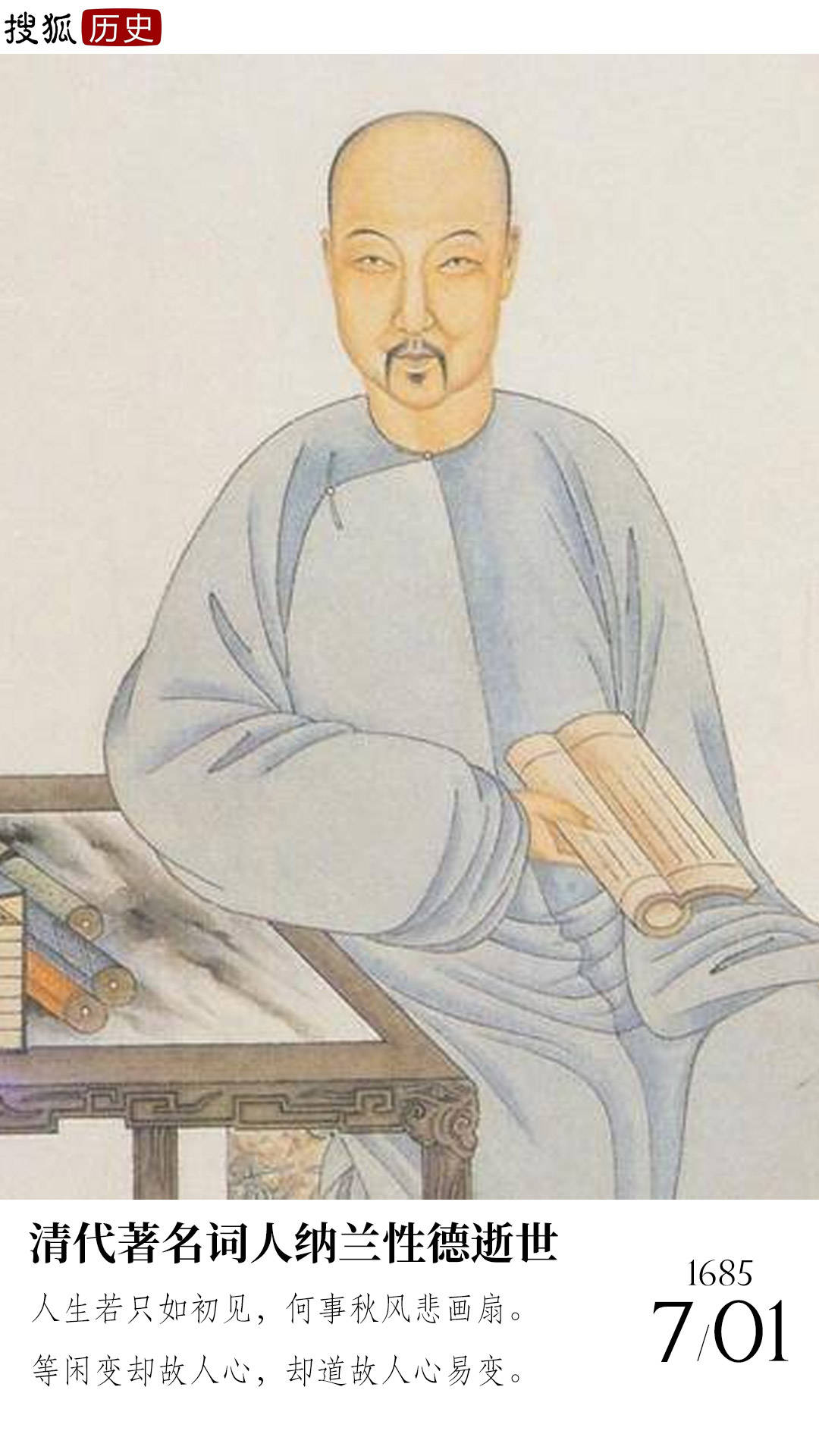 1685年7月1日,纳兰性德病倒在暮春,终年三十岁。纳兰性德是清朝著名词人,他的词作涉及爱情友谊、边塞江南、咏物咏史及杂感等方面,文风清澈,感情炽烈而放达,著有《通志堂集》《侧帽集》《饮水词》等,被誉为“满清第一词人”、“第一学人”。