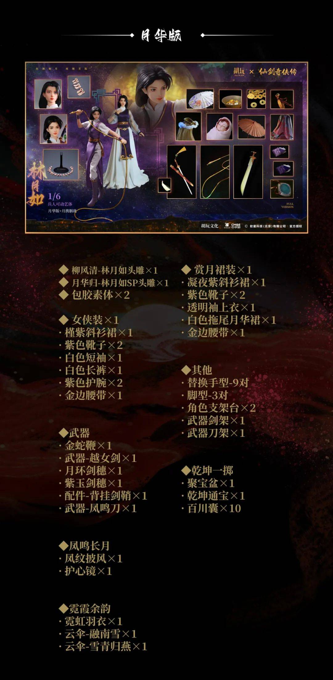 伴随初见柳树下、比武招亲、风雪待归等经典画面,仙剑奇侠传携手胡玩文化为各位大侠带来1/6林月如兵人可动艺体!将于今晚20:00准时开定。注艺还原,再度与卿携手同游。