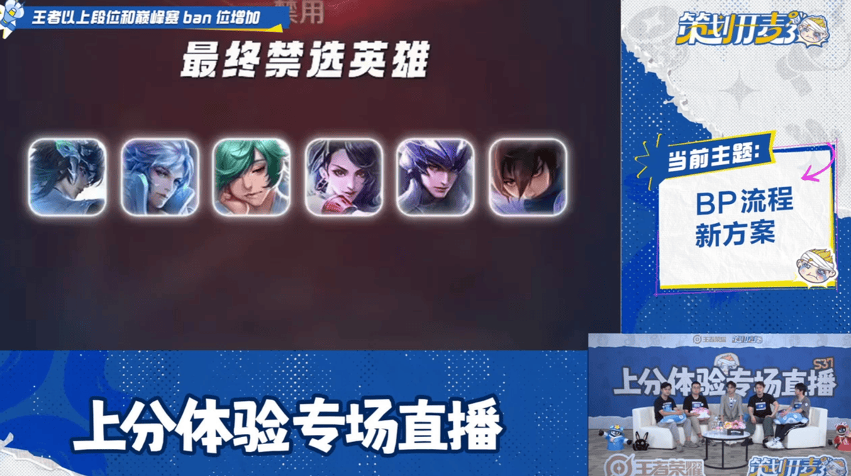 BP无非是ban掉让自己难受的英雄,让选手使用的英雄有一个好的发挥。排位赛玩家都是乱ban英雄,他们从来不关注英雄之间的克制关系。巅峰赛玩家则不同,他们比较关注克制论,而且对BP较为重视。随着新英雄的增多,高端局玩家认为ban位不够用,S37赛季ban位开始改革。策划已经公布了改革的相关内容,ban位增加到了10个。