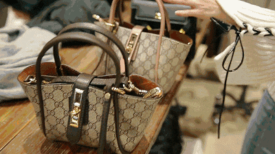 前面小口袋适合放一些“薄感”的物品,比如证件夹、散粉、粉饼之类的东西,不与主袋抢空间,范围小了也更好找。