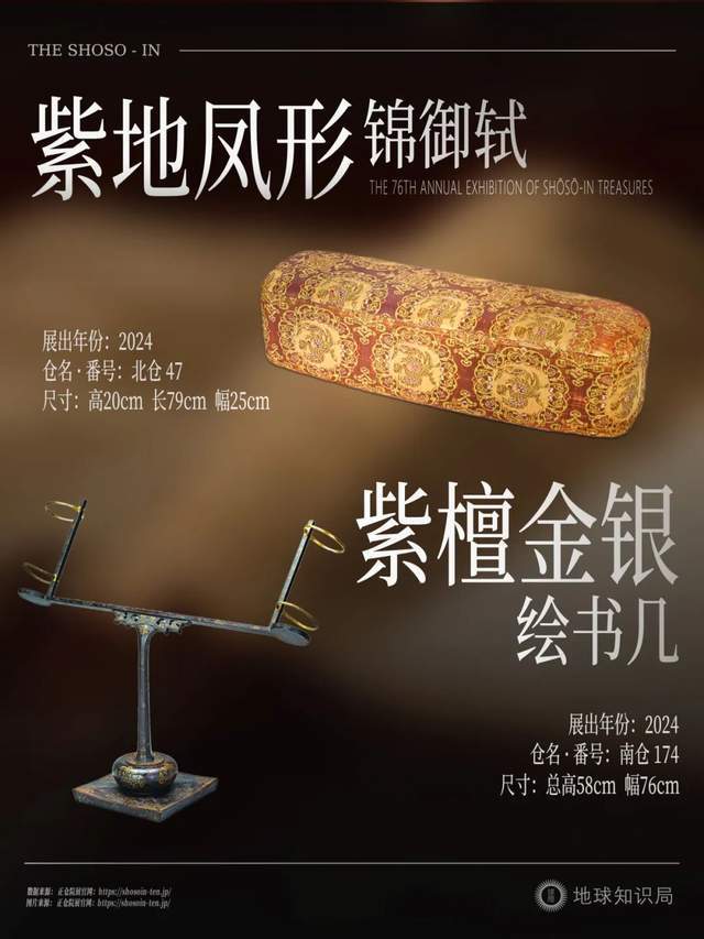 此外,“紫地凤形锦御轼”也将展出,它与之前提到的圣武天皇息息相关。因为这件华丽的锦缎护肘枕,就是圣武天皇的御用品。
